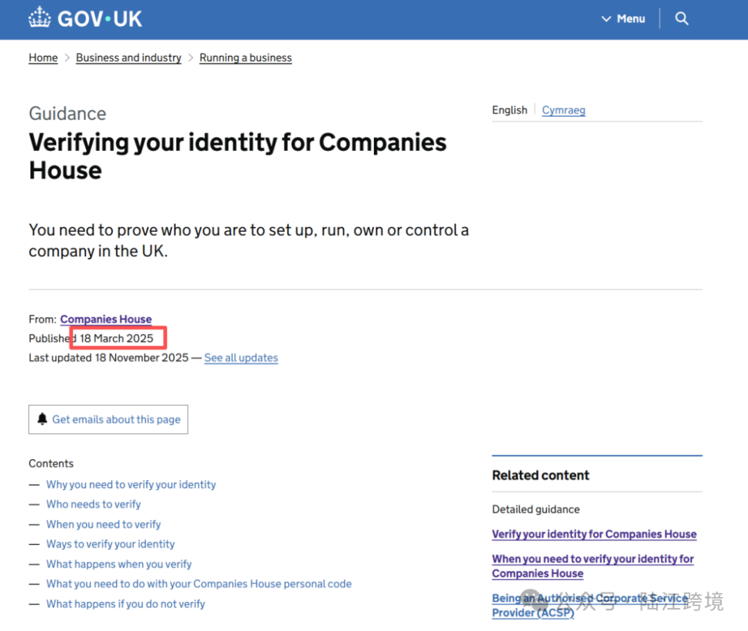 自2025年11月18日起,所有公司董事和重要控制人(PSC)都必须依法验证身份。