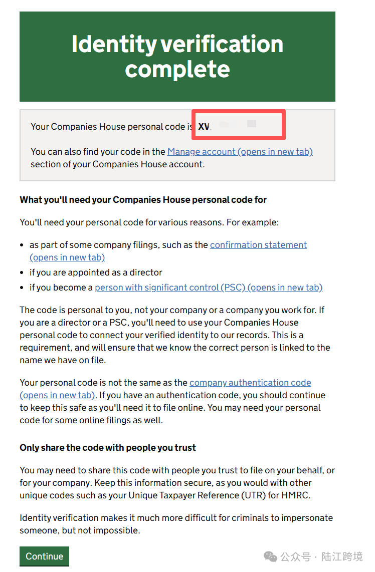 - 已注册的英国公司,在办理年审、信息变更等事项时,必须提供有效的Personal Code。