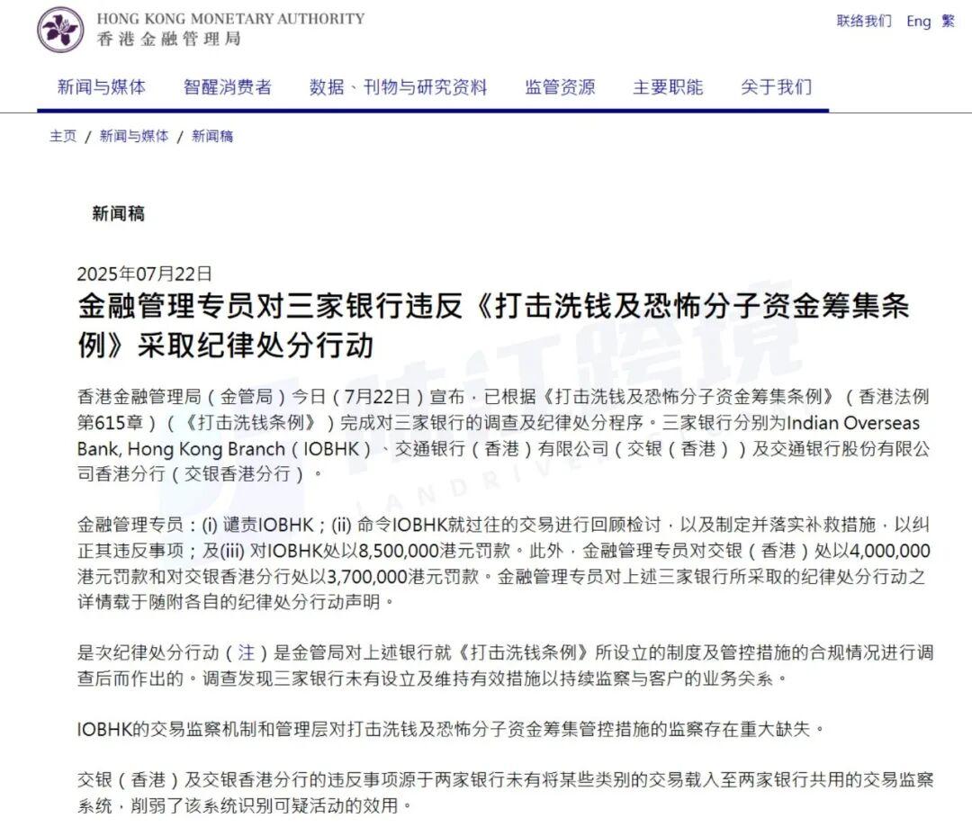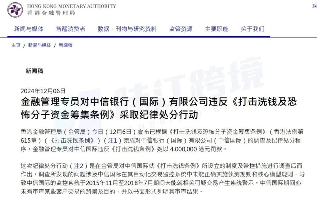 近年来,香港金管局对几家违反《打击洗钱条例》的银行采取了严厉的纪律处分。这个信号非常明确:香港正在持续加大反洗钱力度,对任何违规行为都是“零容忍”的。