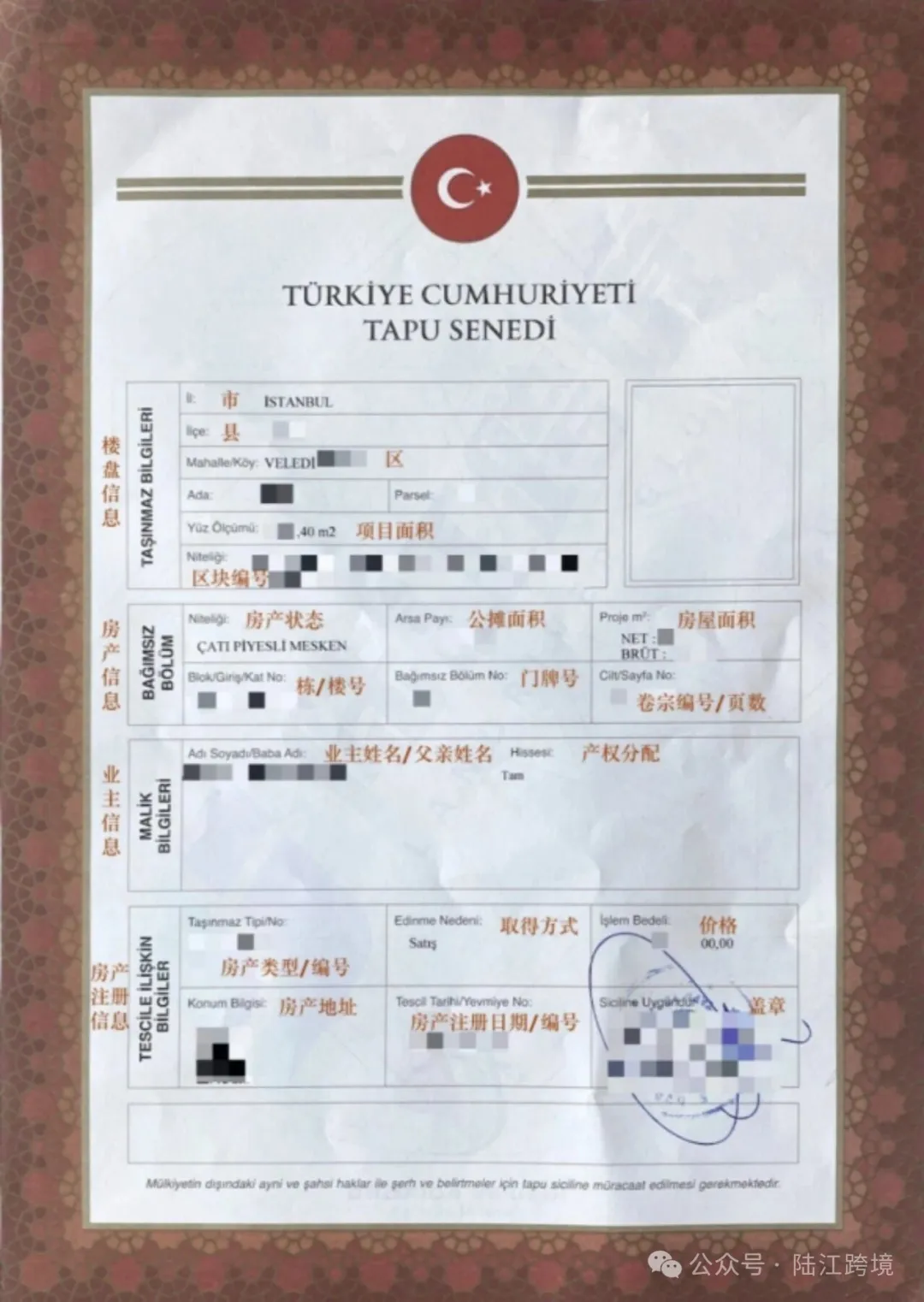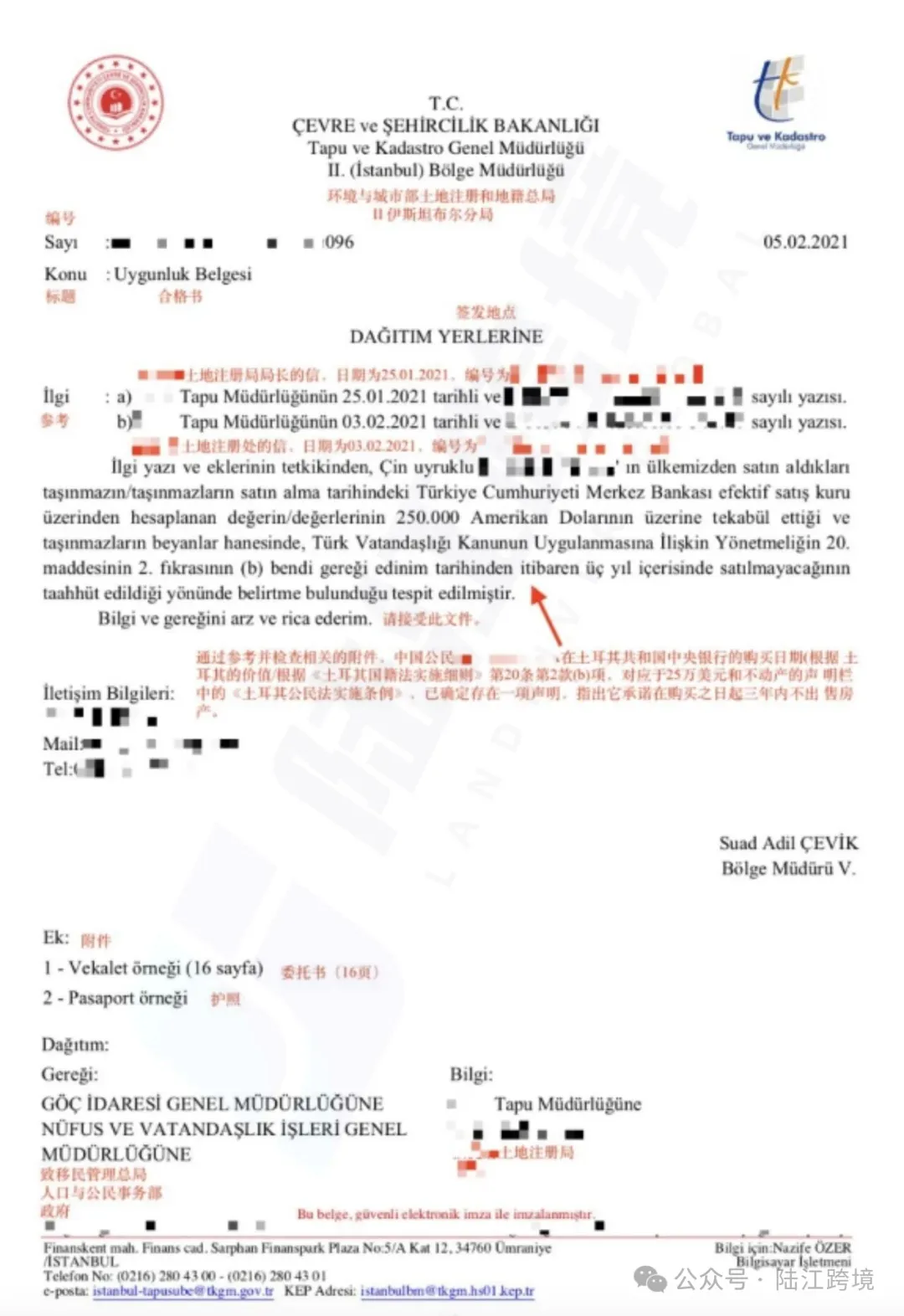 完成房款支付后,办理产权过户及登记,取得土耳其房产证,投资合格确认书上将标注“三年内不得转让”字样。