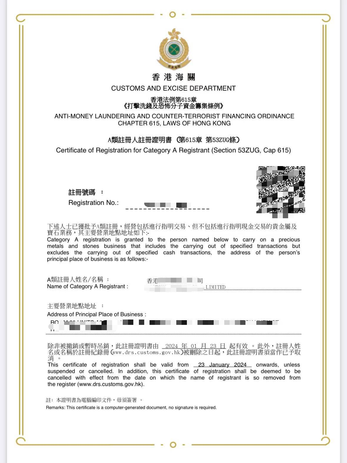• A类注册交易商:交易总额为12万或以上非现金交易,有效期1年