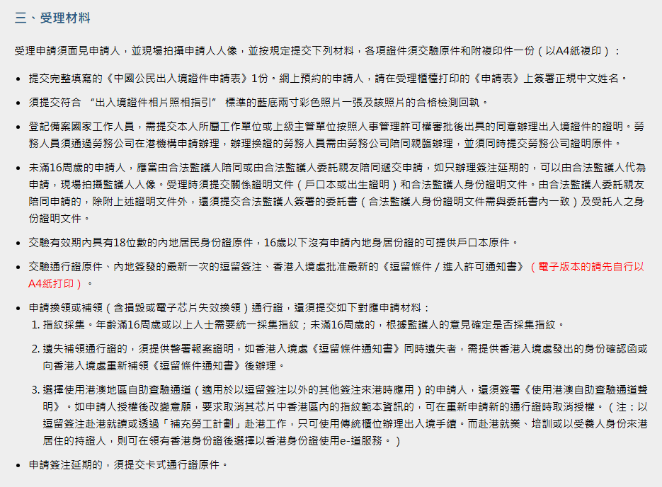 - 旧证:仅续签当场收走港澳通行证;换证领取新证时要交回旧证(如果遗失需填写声明书)