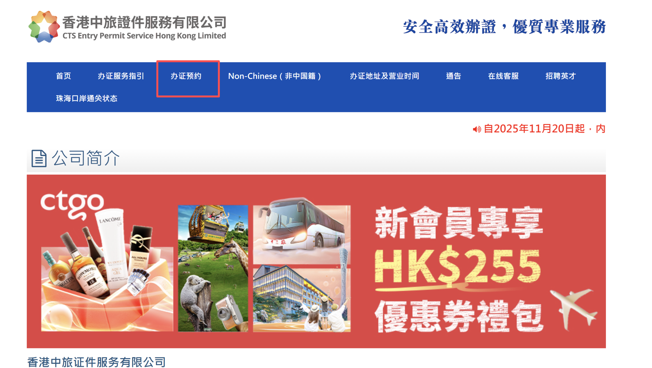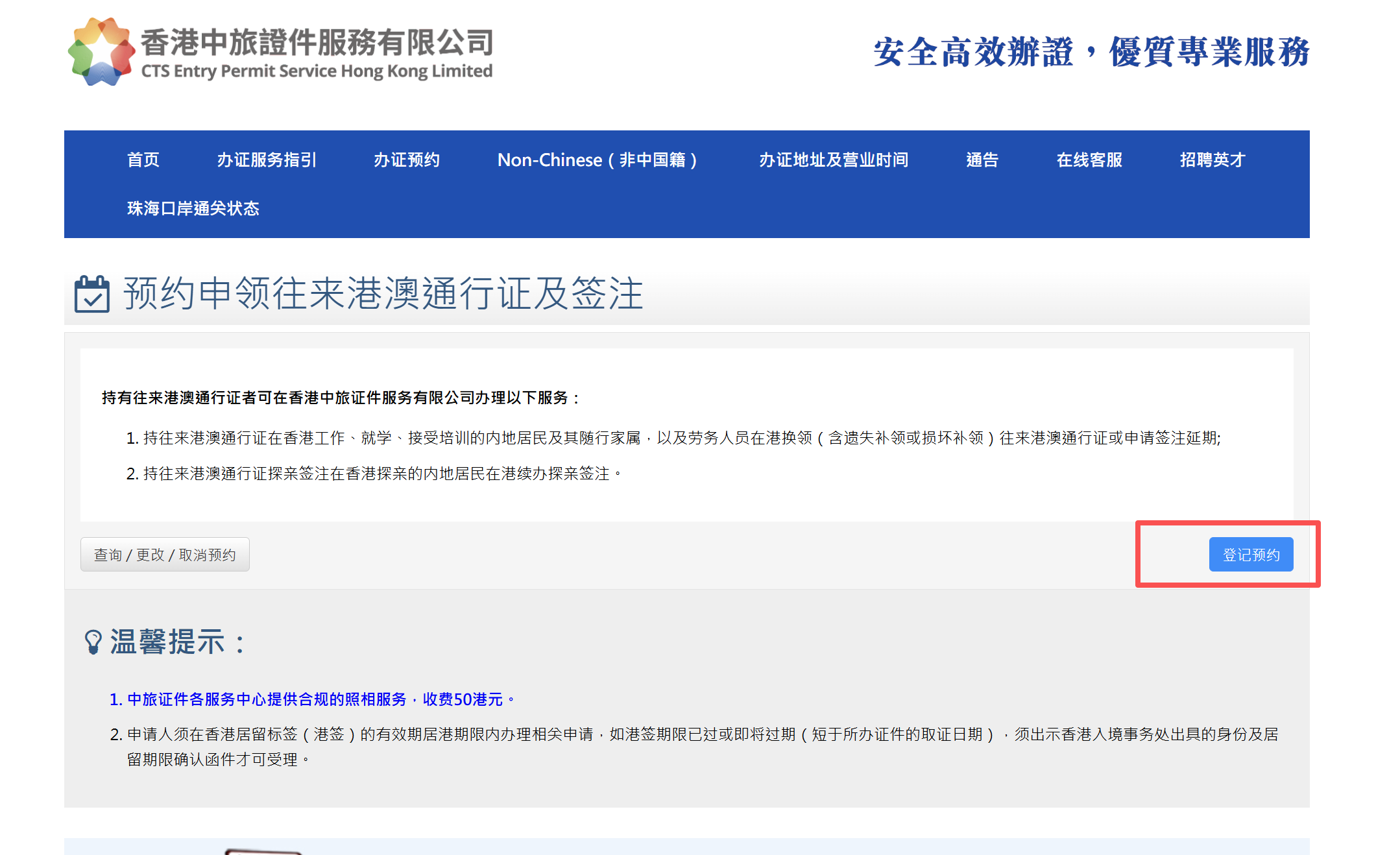 1.在香港中旅社官网预约https://ww2.ctshk.com/