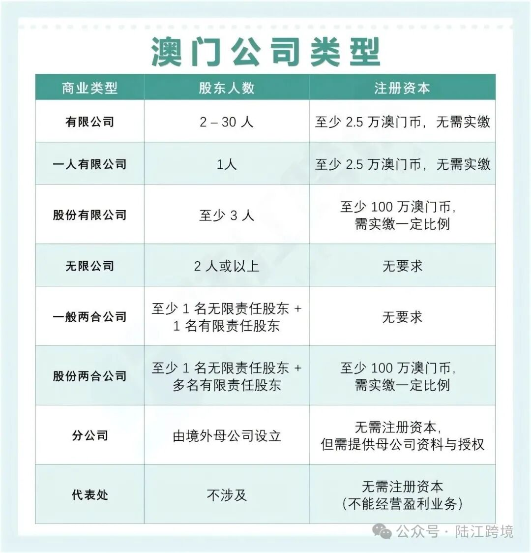 至于澳门其他的公司类型及差别,可以参考下方表格: