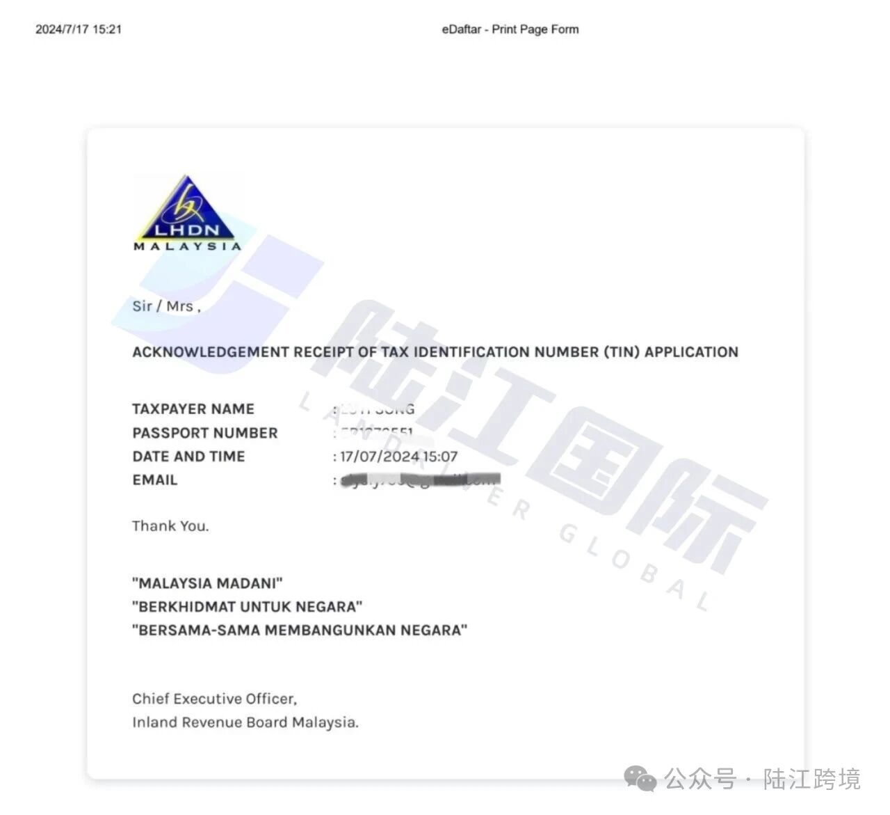 其次,马来西亚税号的获取成本不算高,不需要办理移民,不需要长期签证,甚至不需要亲赴马来面签,只需要通过专业的机构(陆江跨境)就能丝滑办理。